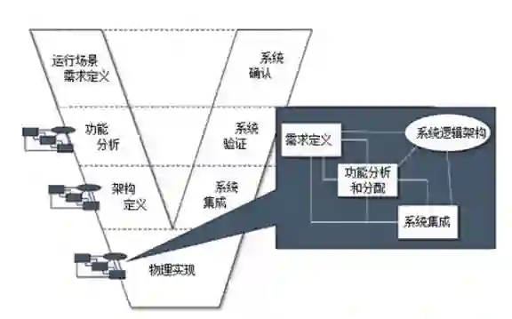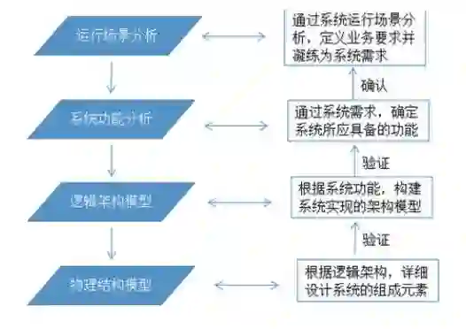 MBSE 本质上还是系统工程,其需求定义、功能分解、逻辑架构、详细设计、综合集成、验证确认的整体思路并没有发生任何变化。但 MBSE采用了一种崭新的手段来更好地实践系统工程,即在专门的系统工程建模工具上,构建图形化的系统模型表征系统需求、系统功能、系统架构、系统行为等。