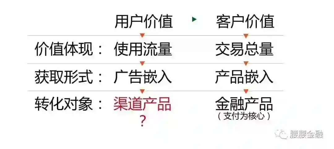 这种传统的金融获客模式,仍然没有摆脱“客户与用户”的认知阻碍,仅靠账户与支付产品去打市场,最终呈现的结果,就是场景中更高的用户价值难以转化,而客户价值却被场景牢牢把握。