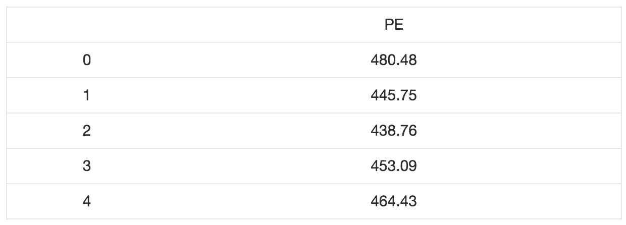 这样我们就得到了在步骤1里面需要求得的5个值。也就是说PE和其他4个变量的关系如下: