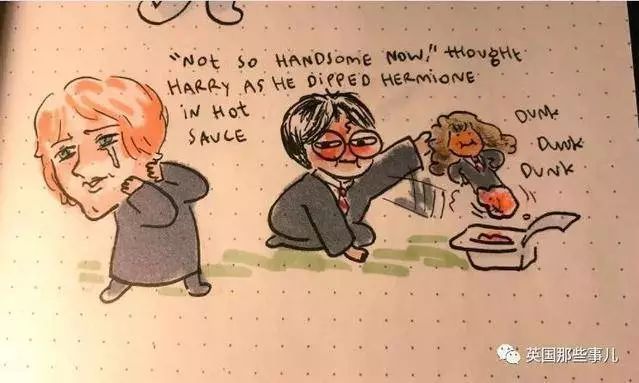 『现在不那么帅气了。』哈利一边想着,一边用赫敏蘸了蘸辣酱。