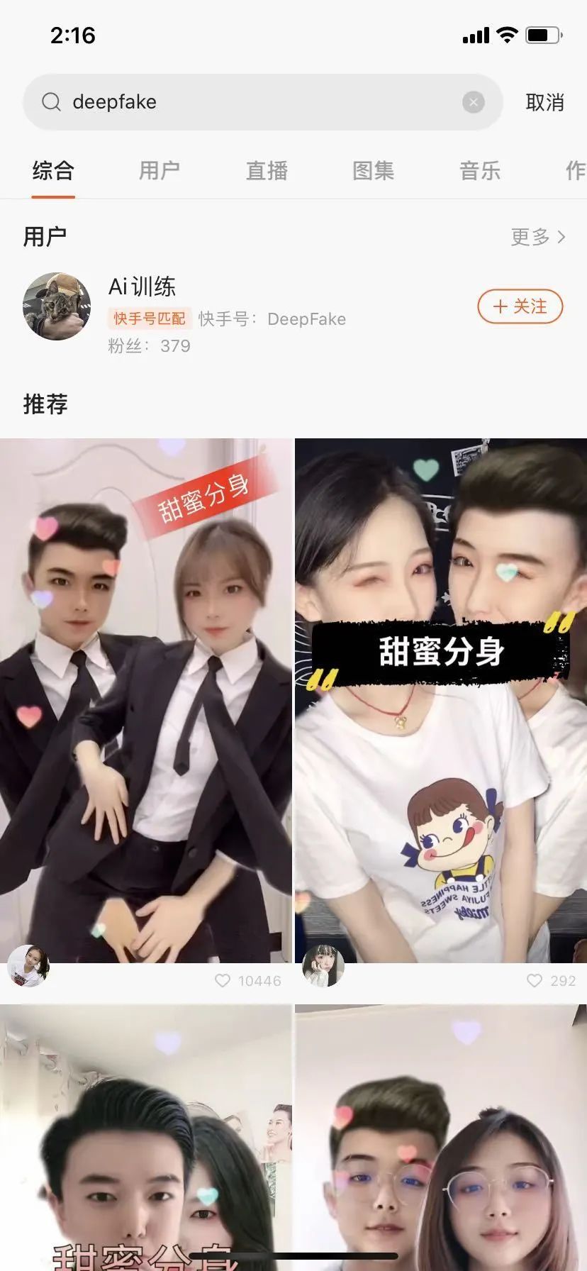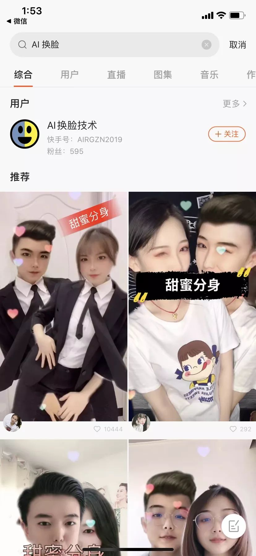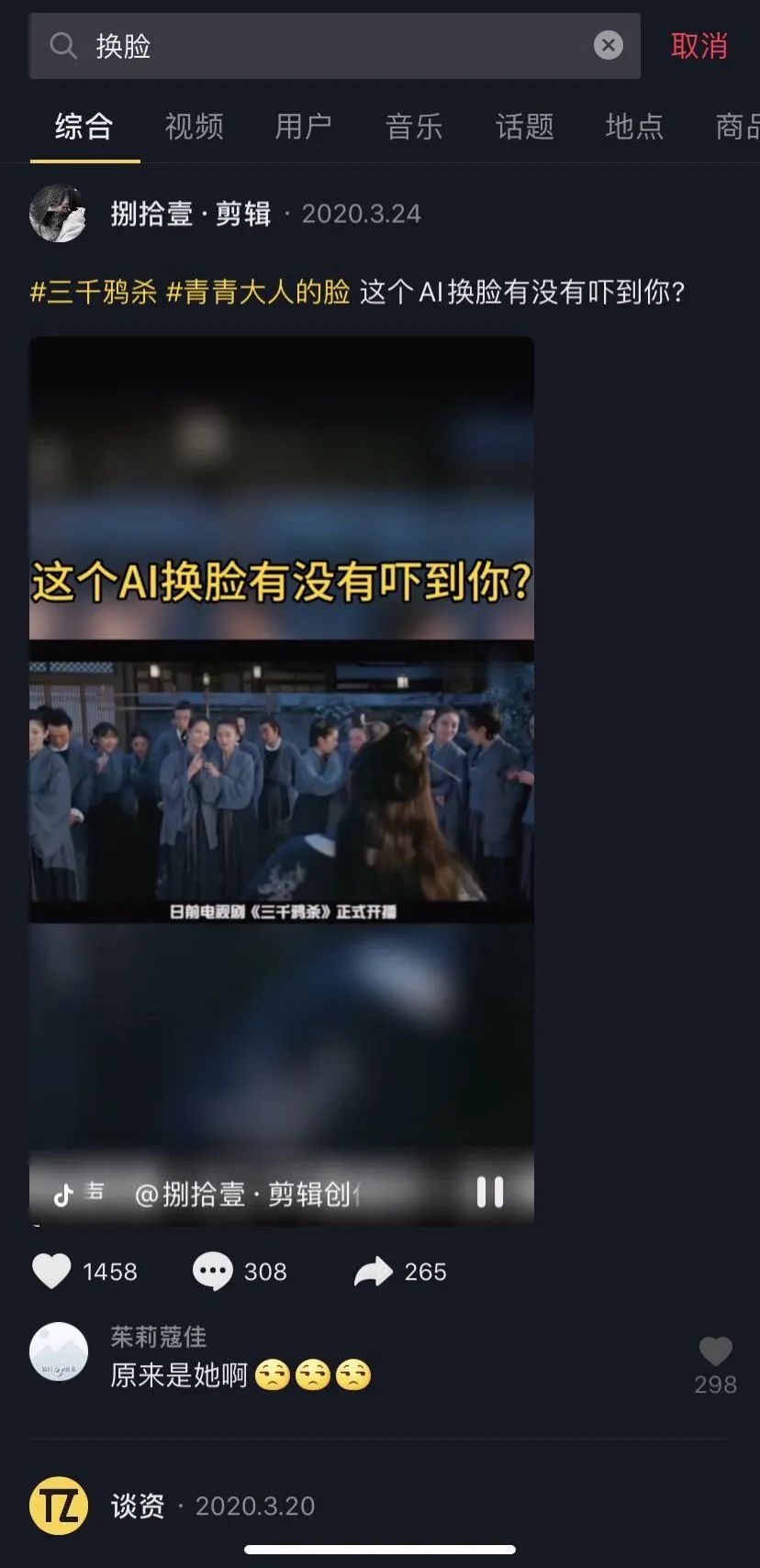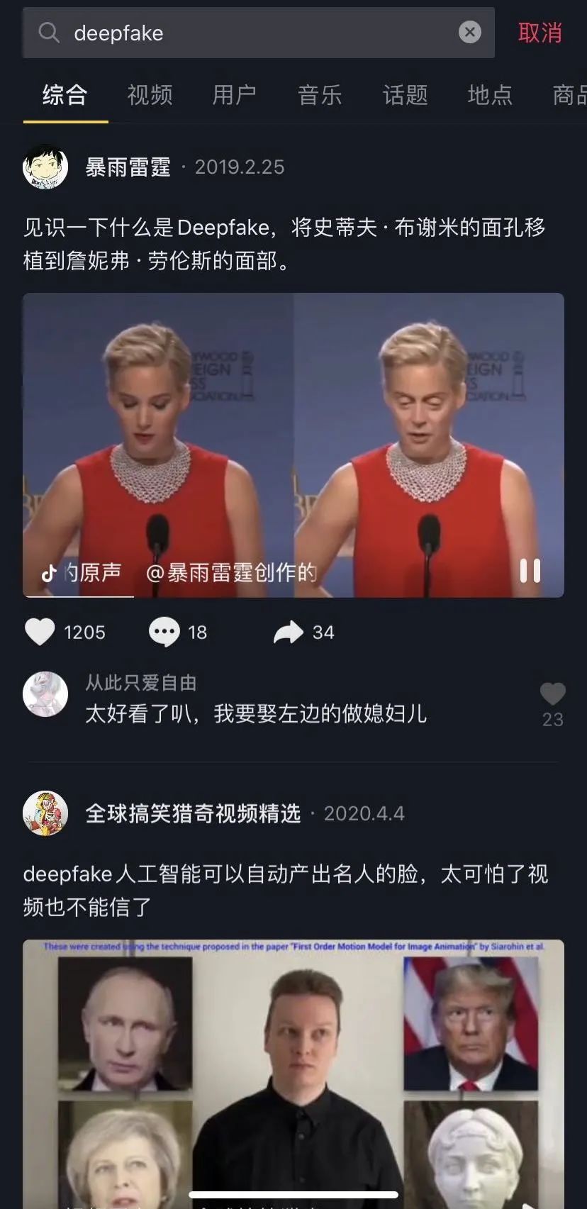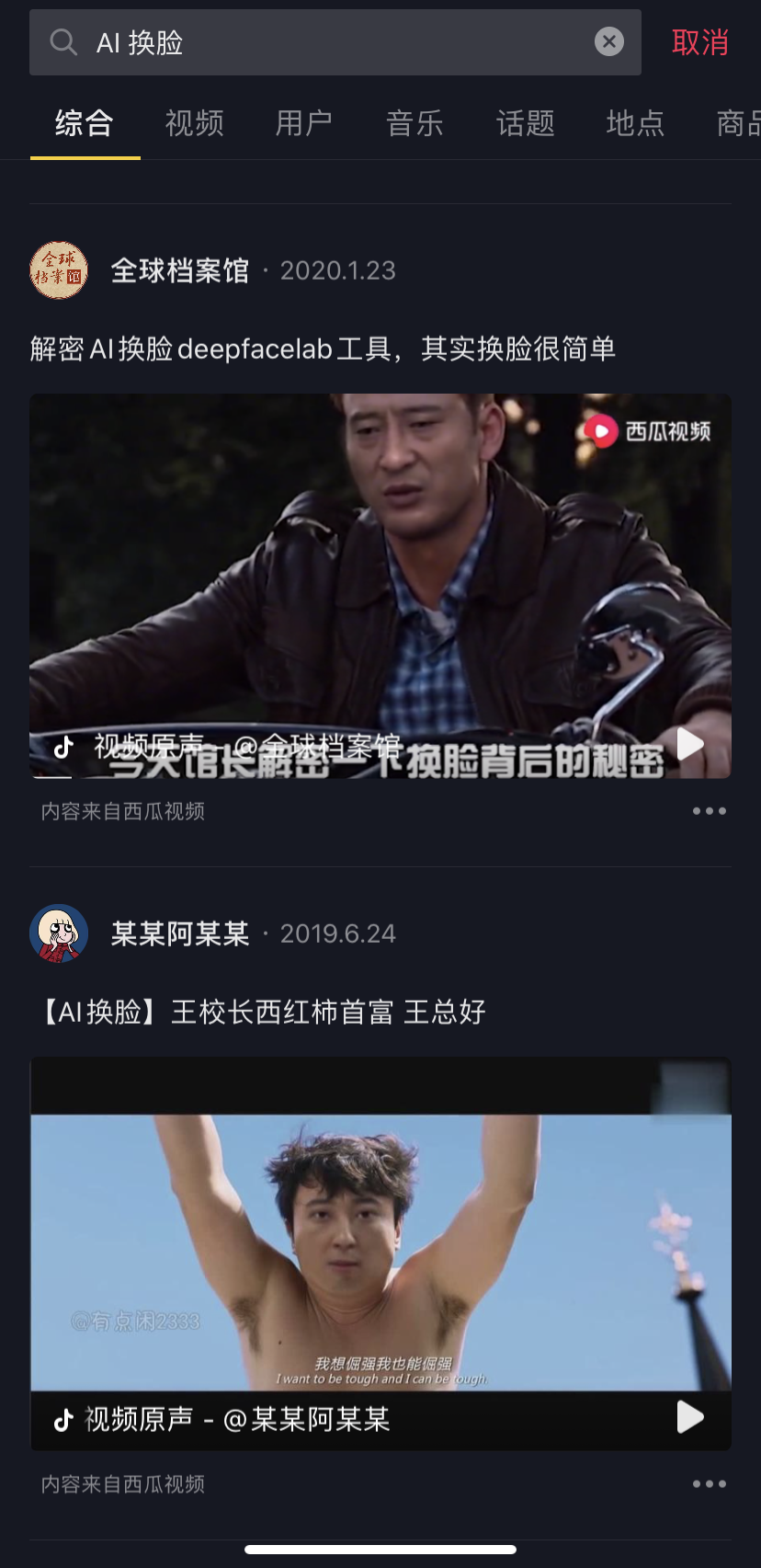 我们在今天用 AI 换脸这一关键词,分别在抖音、快手和 bilibili 上用 AI 换脸、换脸、Deepfake 三个关键词,进行了搜索。