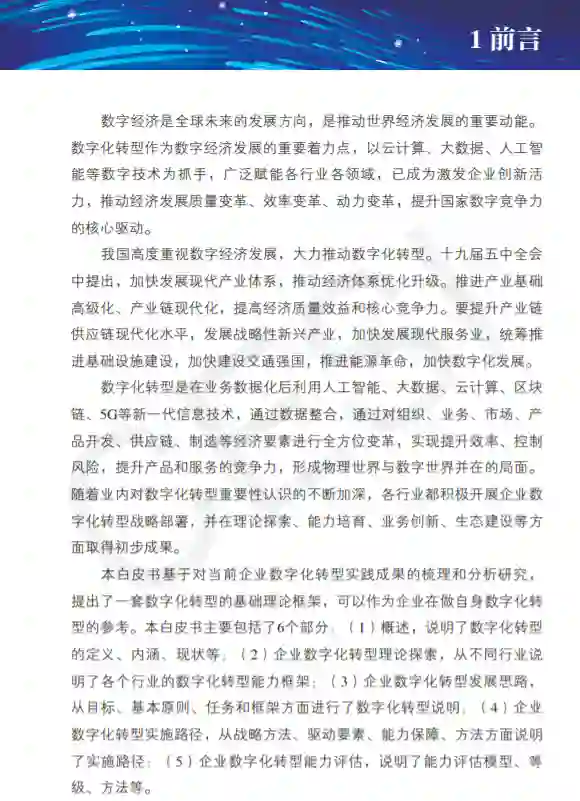 (1)概述,说明了数字化转型的定义、内涵、现状等;