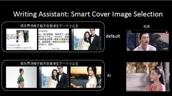有些作者有固定的原文配图,我们可以帮助作者挑选文章的封面图。原文图片可能大小不一,为了配合封面固定大小,机器会利用人脸识别等技术去识别图片中最关键的区域,设置为封面。比如含有人脸的图片,将人脸的技术抠出来,还有一些动物,可以将它最关键的部分抠出来放在封面中。