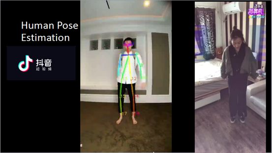 最近也在研发人体姿态以及人体关键部位比如手肘、脚踝、膝盖等位置的实时识别。依靠这一技术,抖音近期上线了一个新的功能叫尬舞机。这一功能让抖音在App Store排行榜上到了第一。