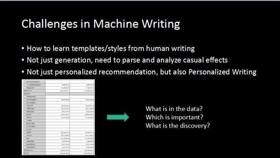 以上就是我介绍主要内容。最后我将提出机器写作方面我们面临的一些技术挑战。