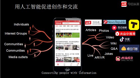 同时,像问答,让专家来回答问题,也会成为内容的一种形式。当然,我们要把内容创作和交流的效果提高,为每个人推荐他最喜欢的内容,涉及到三个最核心的技术: