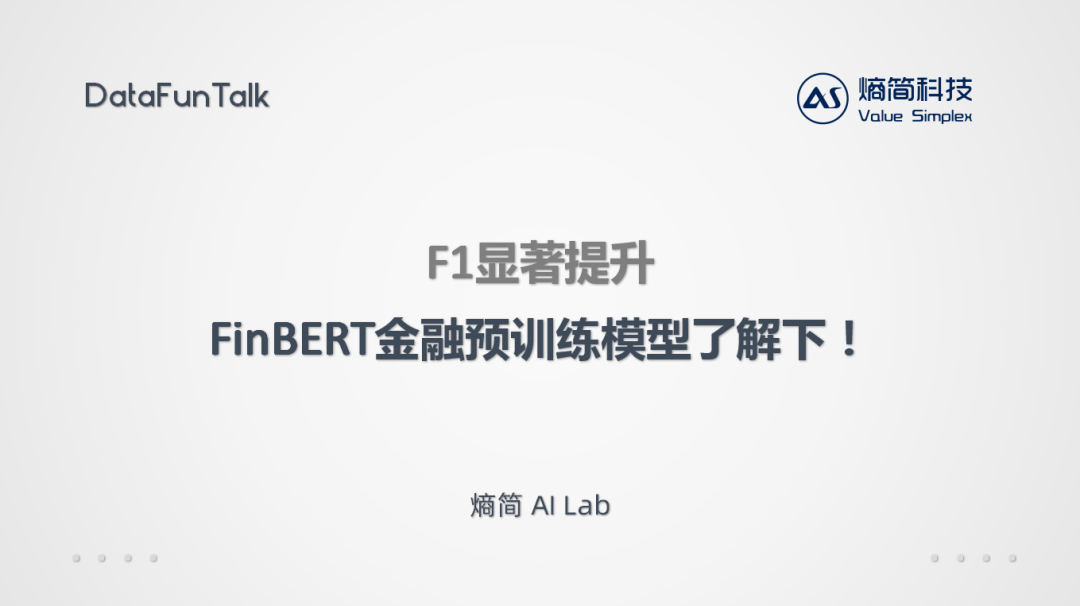 为了促进自然语言处理技术在金融科技领域的应用和发展,熵简科技 AI Lab 近期开源了基于 BERT 架构的金融领域预训练语言模型 FinBERT 1.0。据我们所知,这是国内首个在金融领域大规模语料上训练的开源中文BERT预训练模型。相对于Google发布的原生中文BERT、哈工大讯飞实验室开源的BERT-wwm 以及 RoBERTa-wwm-ext 等模型,本次开源的 FinBERT 1.0 预训练模型在多个金融领域的下游任务中获得了显著的性能提升,在不加任何额外调整的情况下,F1-score 直接提升至少 2~5.7 个百分点。