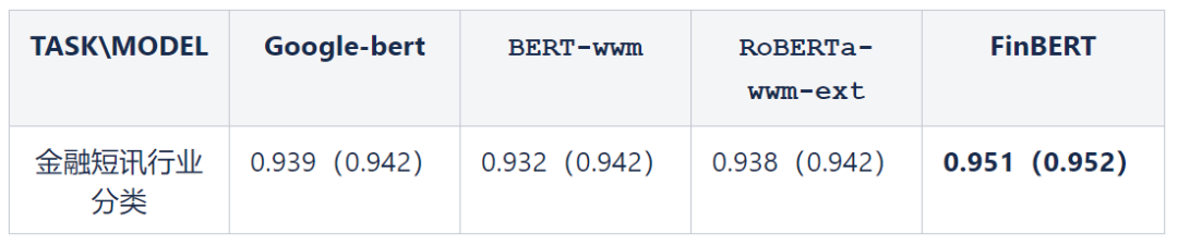 相对于Google发布的原生中文BERT、哈工大讯飞实验室开源的BERT-wwm 以及 RoBERTa-wwm-ext 等模型,本次开源的 FinBERT 1.0 预训练模型在