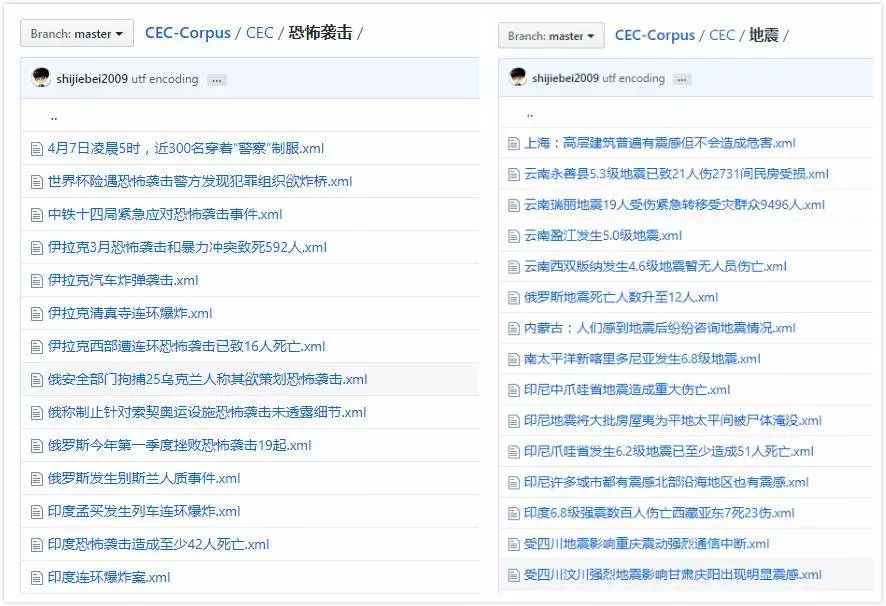 几年前,上海大学语义智能实验室为了开展文本事件抽取和事件关系的抽取实验,创建了中文突发事件语料库(Chinese Emergency Corpus,CEC)。