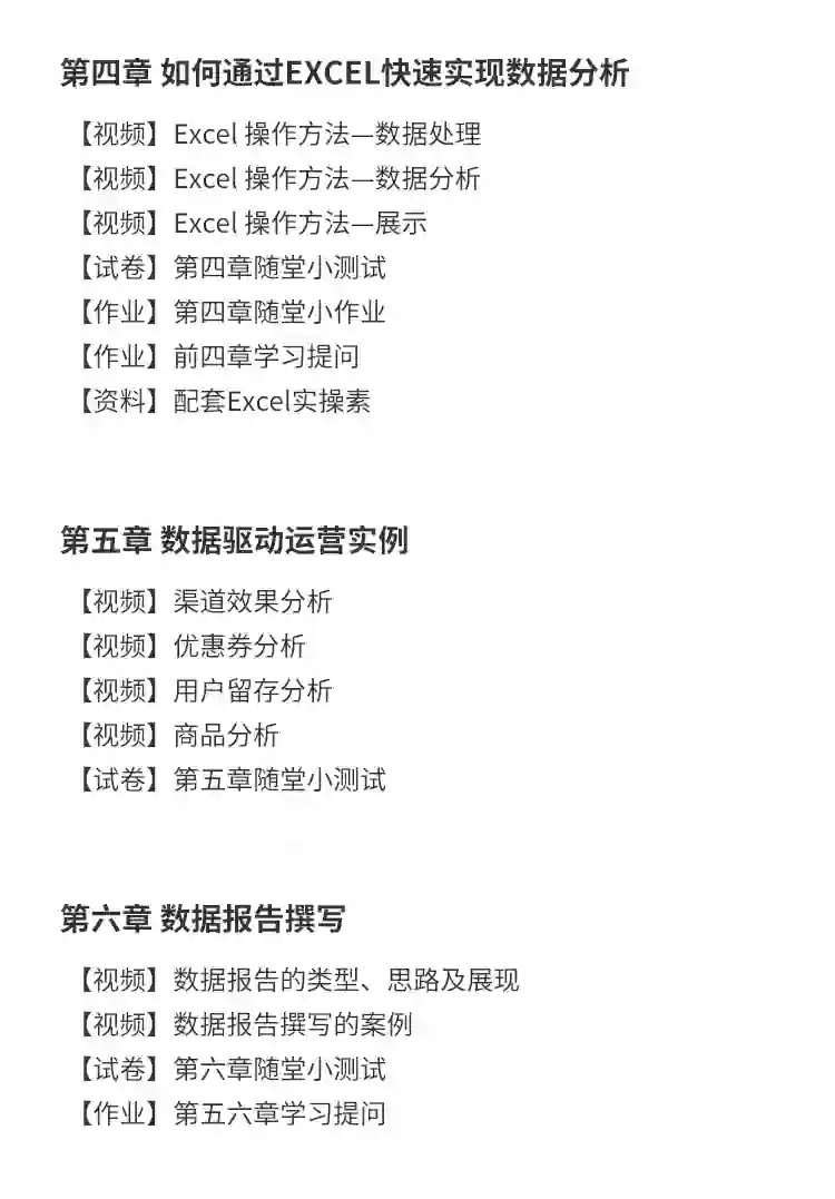 导师通过亲身经历的多个数据驱动运营实战案例分享,教你如何在常见问题的分析中建立数据驱动思维,以下数据分析方法课程将全覆盖。