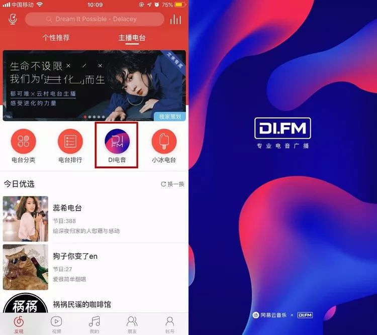 据网易 近日,网易云音乐与在线电音广播DI.FM达成战略合作,上线“DI电音”电台,进入电台后即可24小时不间断收听超过90类电音频道内容。