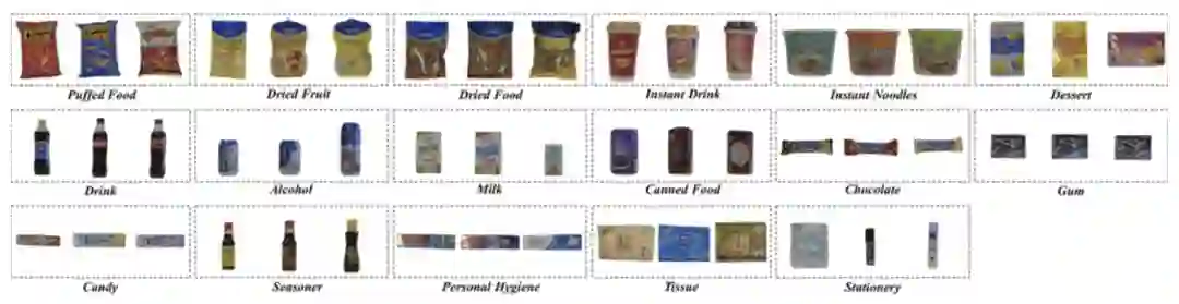 尽管存在上述问题,ACO 还是有着潜在的研究与商业价值。如果有标注精良的数据集,这一问题或可迎刃而解。为此,旷视科技南京研究院打造了一个目前最大的商品识别数据集——RPC(Retail Product Checkout),来推动新零售自动收银场景的相关研究和技术进步,它的商品种类高达 200,图像总量达 83k,真实模拟零售场景,且逼真度超过现有同类数据集,同时充分体现出 ACO 问题的细粒度特性。