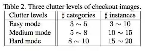 旷视在本文中发布了目前学术界最大的商品识别数据集 RPC,并定义了 ACO 任务和对应的评测指标。RPC 数据集含 200 个商品类别,83,739 张图像,包含单品图和结算图两种形态,并且配有不同监督强度的标注。借助这一数据集,本文清晰界定了 ACO 问题,并使用 4 种基线方法基准化这一数据集。实验结果表明,在这一数据集上 ACO 仍有较大提升空间。同时,该数据集还适用于多个潜在的研究方向。