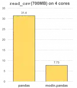 在pandas中,当你做任何类型的计算的时候你每次只能使用一个核心。但是使用Modin,你可以使用机器上的所有CPU内核。即使在read_csv中,通过有效地在整个机器上分布工作,我们也看到了巨大的成效。