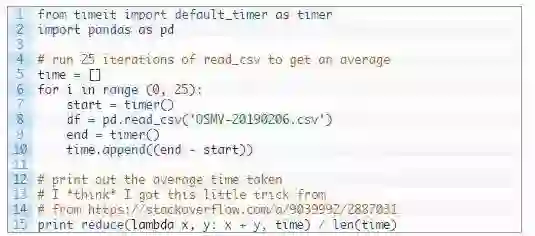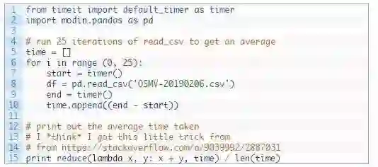 在这个测试中,我将尝试他们的read_csv方法,因为这是他们所强调的亮点。对于这个测试,我有一个105MB的csv文件。让我们给pandas 和 modin计时,看看它们是如何工作的。