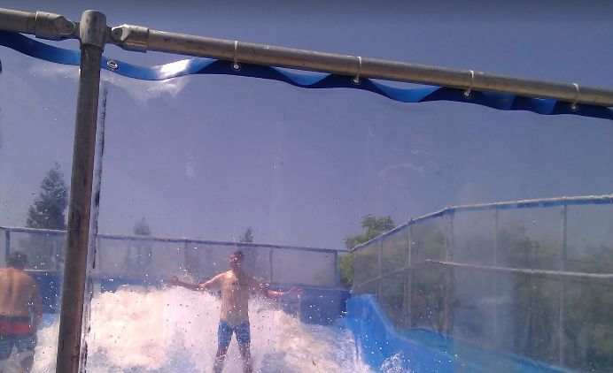 2011年7月29日,在Google位于硅谷山景城的总部,距离地标性的Android雕塑不远处的一栋办公楼前举行了一场派对。组织者搞来了一个大号波浪游泳池,供Google员工们冲浪。