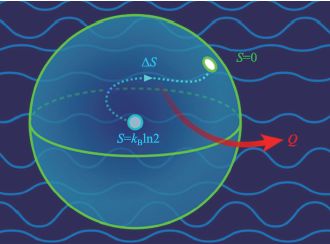 香农熵与物理学之间的联系最初并不清楚。但是由于随机热力学的进步,Landauer 准则现在被理解为热力学第二定律的直接结果。该定律规定熵产出Σ永远不会减少。对于与热沉换热的系统,Σ=ΔS+Q/T,其中ΔS 是系统在某一过程中熵的变化(末态减初态),Q 是最终释放的热量。在一个经典比特上擦除信息,对应于香农熵从其最大值(kBln2)变为最小值(0),或者说,熵变为−kBln2。将其插入第二定律(Σ=ΔS+Q/T≥0 ),我们可以预言:释放的热Q≥ kBTln2,正如Landauer 所预测的。