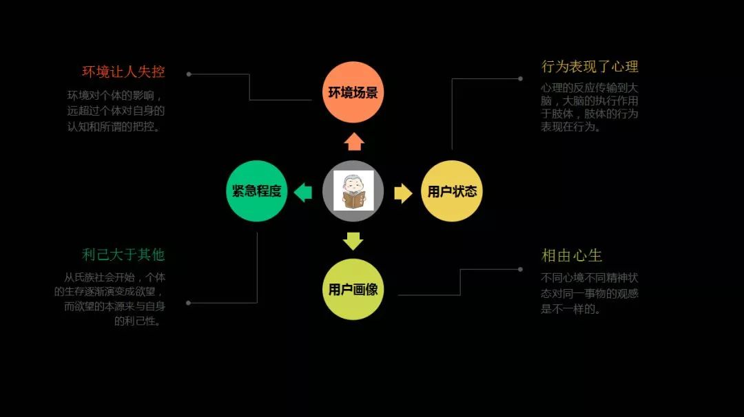 个体因当前所处环境、周期内的心理状态、当前要达成目的、达成目的的紧急程度或迫切程度等多个因素,对个体情绪会有很大影响。而各种因素的影响反馈到用户的动作执行,从而影响事件的触发及发展过程。