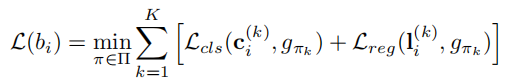 b_i是第i个proposal,L_cls和L_reg分别是label交叉熵和bbox回归的loss。L(b_i)可以看作是EMDLoss(推土机距离),距离最小就是匹配方案。