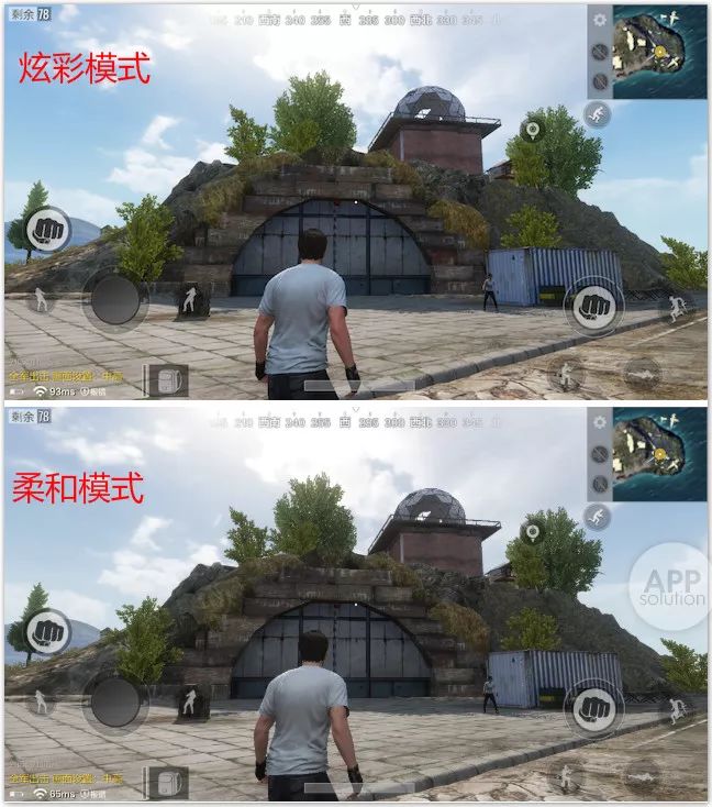 画面方面,《绝地求生 全军出击》的调色更加贴近原版的写实风格,画面也比较浓艳一些。