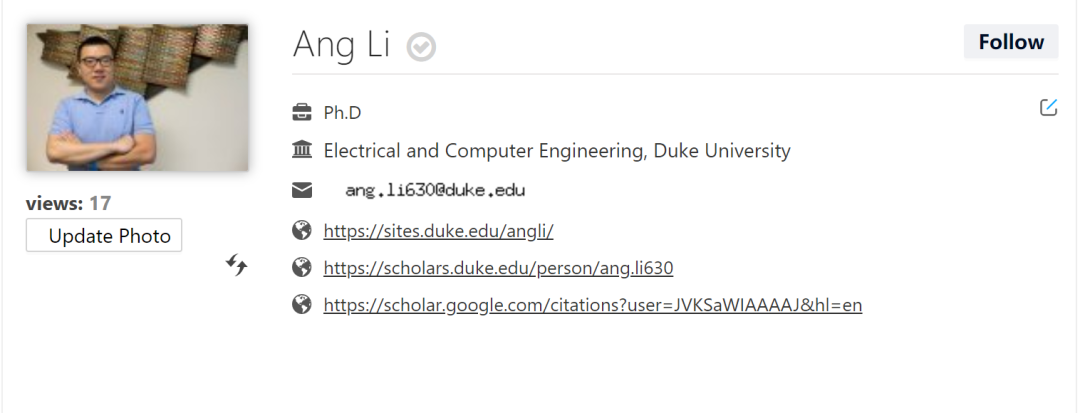论文第一作者 Ang Li 是杜克大学电子和计算机工程系的一名在读博士,导师为陈怡然和 Hai "Helen" Li 教授。Ang Li 曾在2013 年获得北京大学软件工程硕士学位,2018 年获得阿肯色大学计算机科学博士学位。