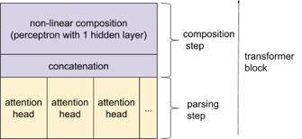 我们试着展示Transformer的这些组件与句法解析/语义合成框架之间的联系: