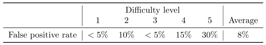 同时,Minerva 也有可能得出正确的最终答案,但推理依然错误。谷歌将这种情况称为「误报」,因为它们被错误地计入到了模型的整体性能得分。分析结果显示,误报率相对较低,Minerva 62B 在 MATH 数据集上的平均误报率低于 8%。