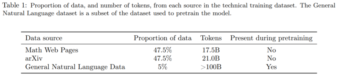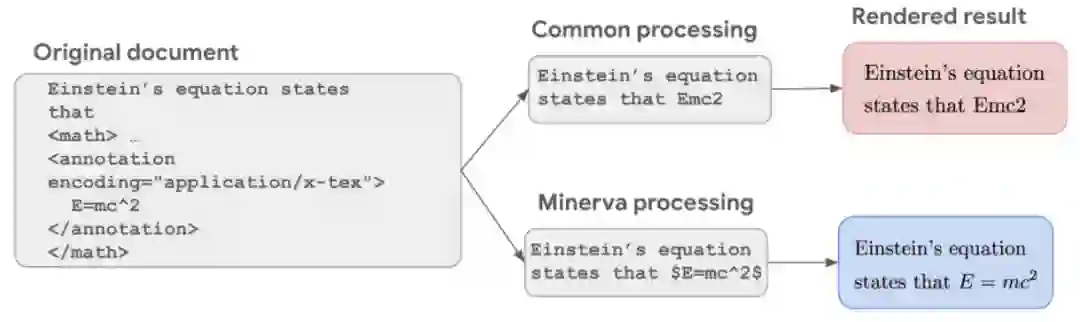 下图为用于定量推理的数据集:研究者在数据处理过程中保留了数学信息,使模型能够在更高的水平上学习数学。