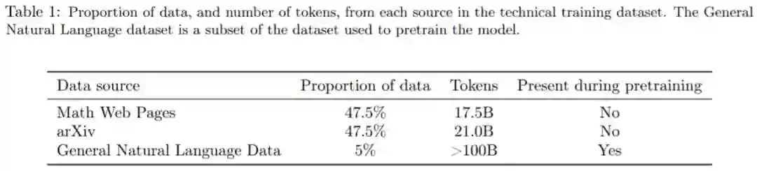 ,在 118GB 数据集上进一步训练完成,数据集来自 arXiv 上关于科技方面的论文以及包含使用 LaTeX、MathJax 或其他数学表达式的网页的数据进行进一步训练。训练之后模型学会使用标准数学符号进行对话。