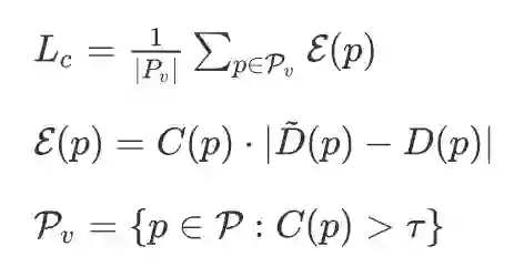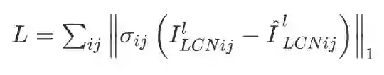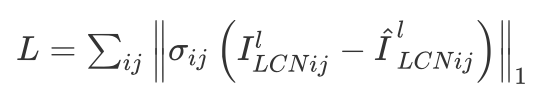 但是另一个问题是,在弱纹理区域局部标准差 可能会趋近于 0,从而导致这部分的损失偏大。为了解决这个问题,作者提出使用参考图像在 9*9 局部区域的标准差 来作一个重新加权(re-weight)。因此,重构误差可以重写为: