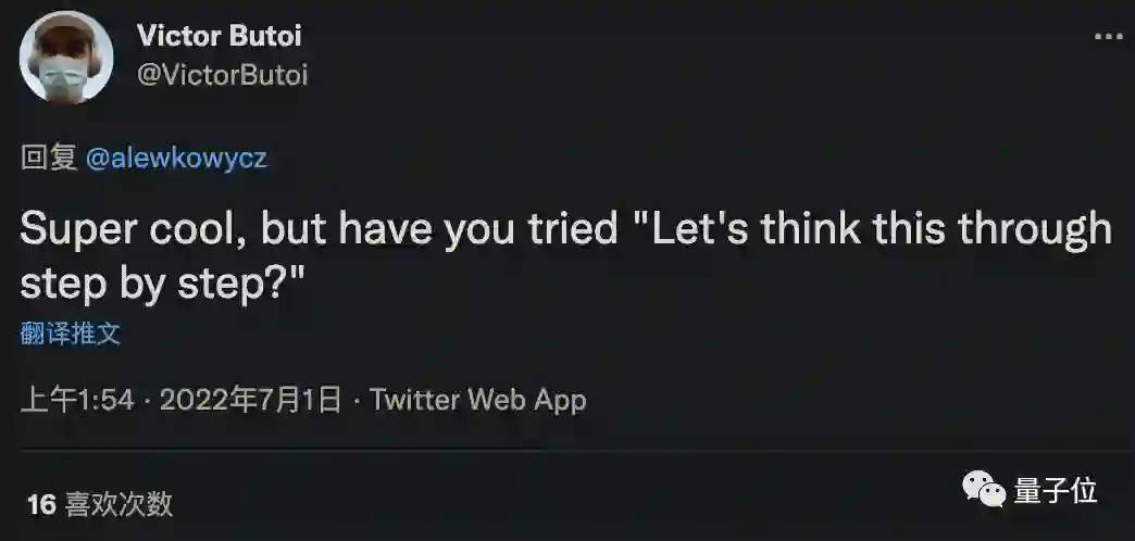 具体来说就是在提问的同时给一个分步骤回答的示例来引导。AI在做题时就可以采用类似的思考过程,正确回答本来会答错的题目。