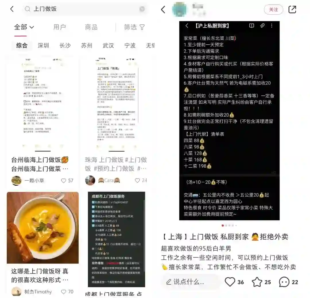 朋友们有没有发现,最近在社交平台上,出现了很多关于“上门做饭”的帖子。