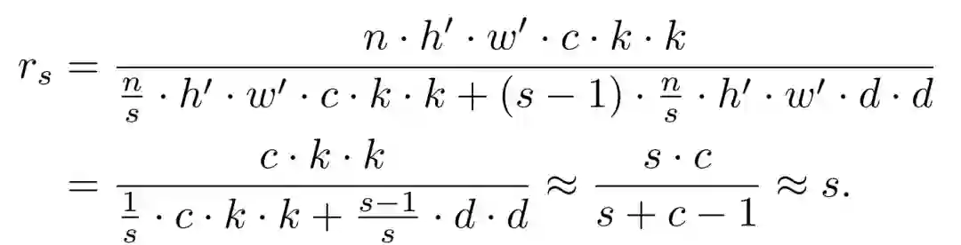 在不改变输出特征映射大小的情况下,与普通卷积module相比该Ghost模块所需的参数总数和计算复杂度相比减少了;