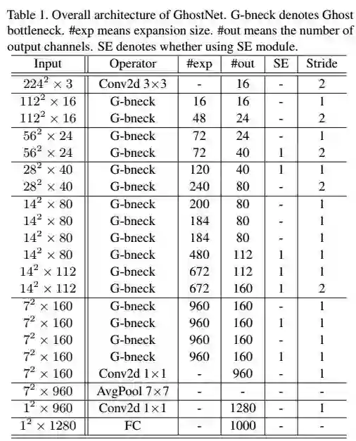 基于Ghost模块,本文建立了一个高效的神经网络结构:GhostNet;