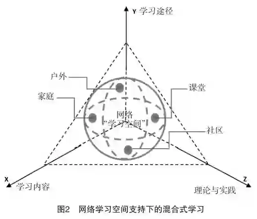 基于网络学习空间的混合式学习主要从学习途径、学习内容以及理论与实践三个维度展开。