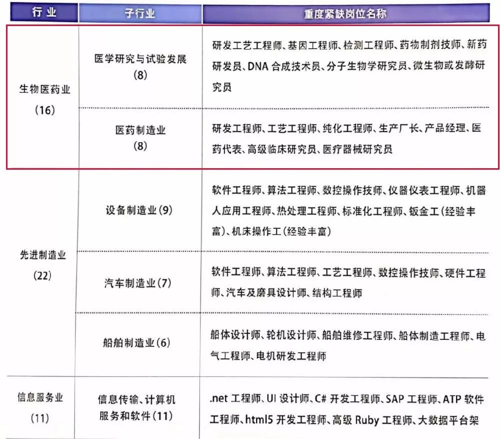 不过,从各行业来看,生物医药业、信息服务业和商贸服务业的重度紧缺和紧缺岗位占比有所上升。其中,生物医药业紧缺程度加重,由去年的紧缺变为重度紧缺。