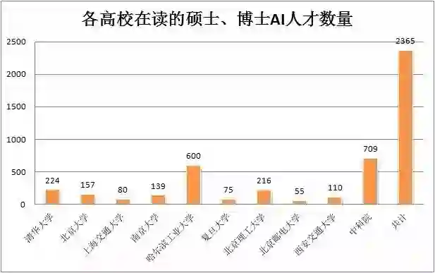 各个高校的实验室中,中科院、哈工大、清华在读的硕士、博士数量最多,但是这十几个学校在读的硕博人才加起来有2300多人。其中,中科院是中国输出高端AI人才做多的机构之一。