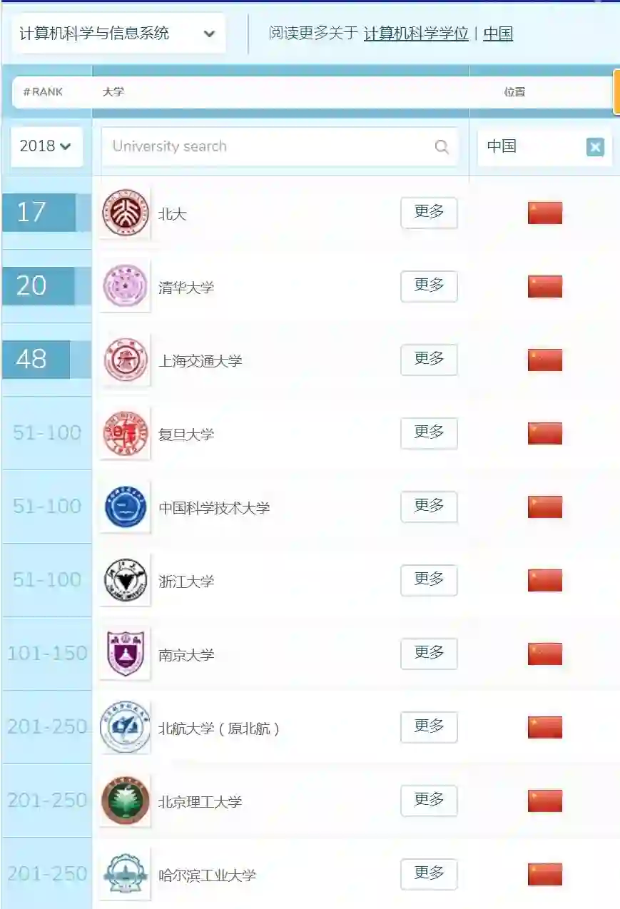 2 月 28 日,QS 也发布 2018 最新世界大学专业排名,在这里我们选取出中国内地计算机科学专业前十排名:
