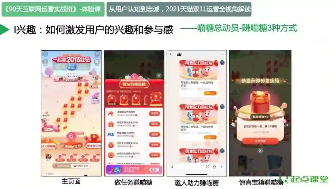 喵糖总动员的互动游戏玩法,通过利益刺激,以游戏的方式让用户参与和分发,在浏览、搜索等动作中不断刺激用户对商品、品牌产生兴趣。
