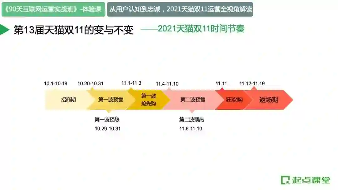 上周末,前腾讯高级运营经理,起点课堂运营学院院长@潘至鹏老师,为我们在线拆解双十一的运营逻辑。整个分享持续2个半小时,分享内容合计3.7万余字。我们将精华内容整理成本文,希望能对各位有所启发。