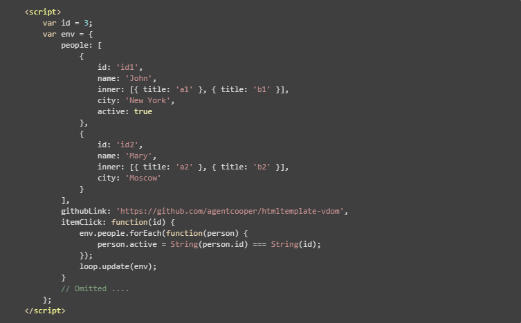 入口参数是个 Object,模板中的变量 x 是该对象的 .x 属性,例:virtual-stache-example