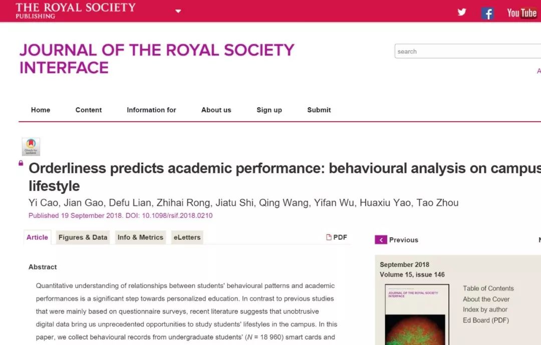 电子科技大学周涛团队的研究首次揭示校园生活的规律性和学生成绩的显著关联
