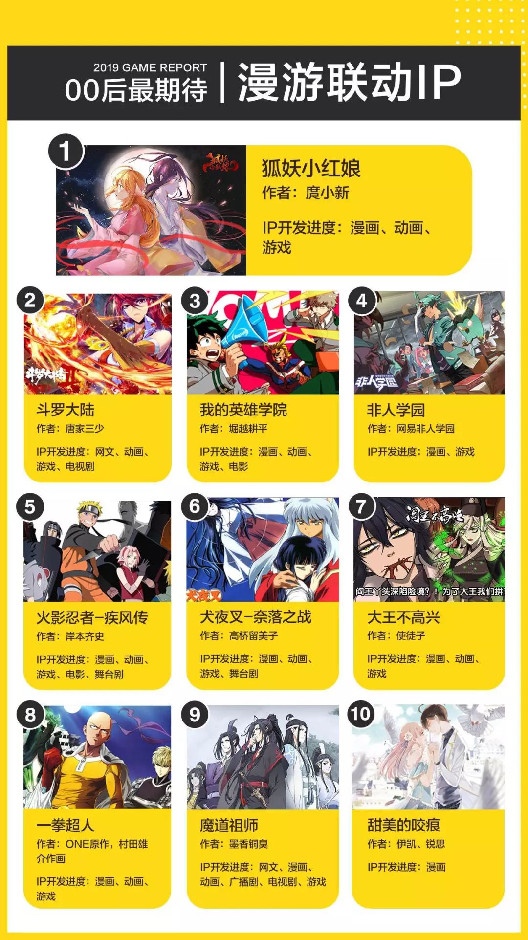 1.《魔道祖师》和《甜美的咬痕》目前还未有游戏产品面世,属于玩家最期待发生联动的IP。