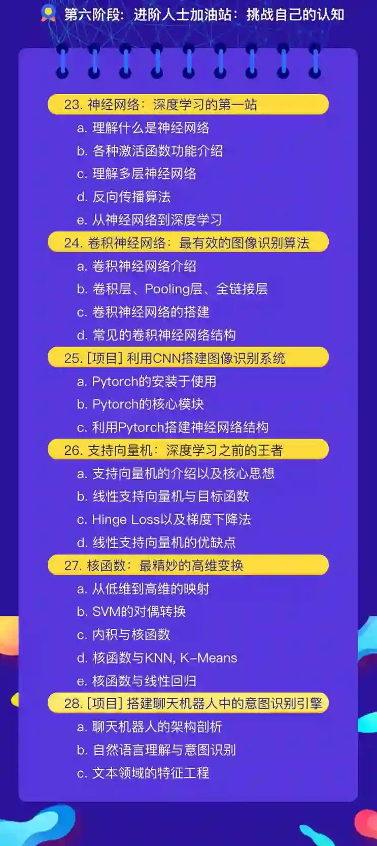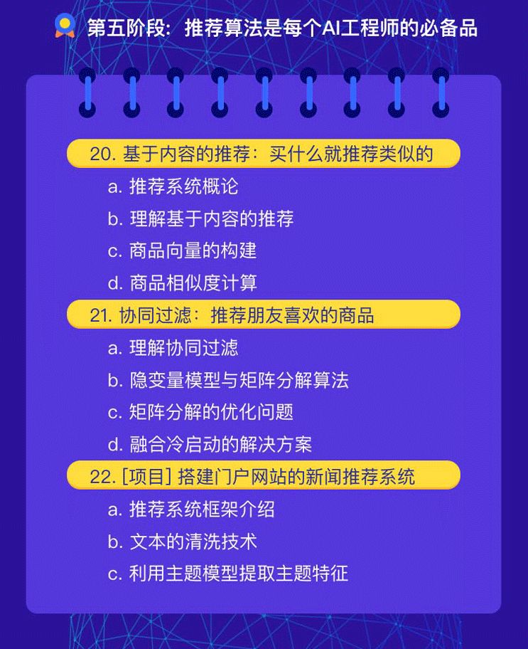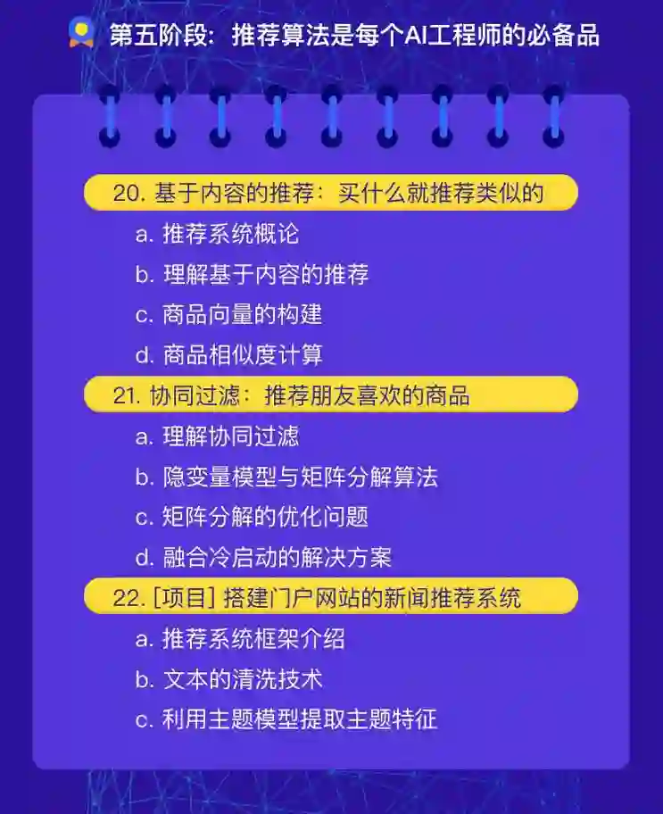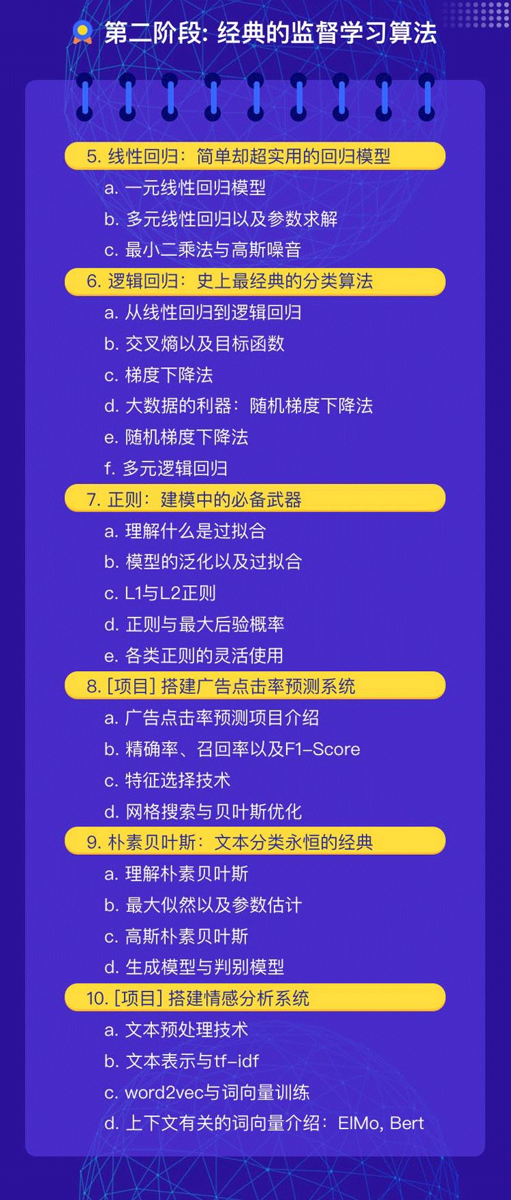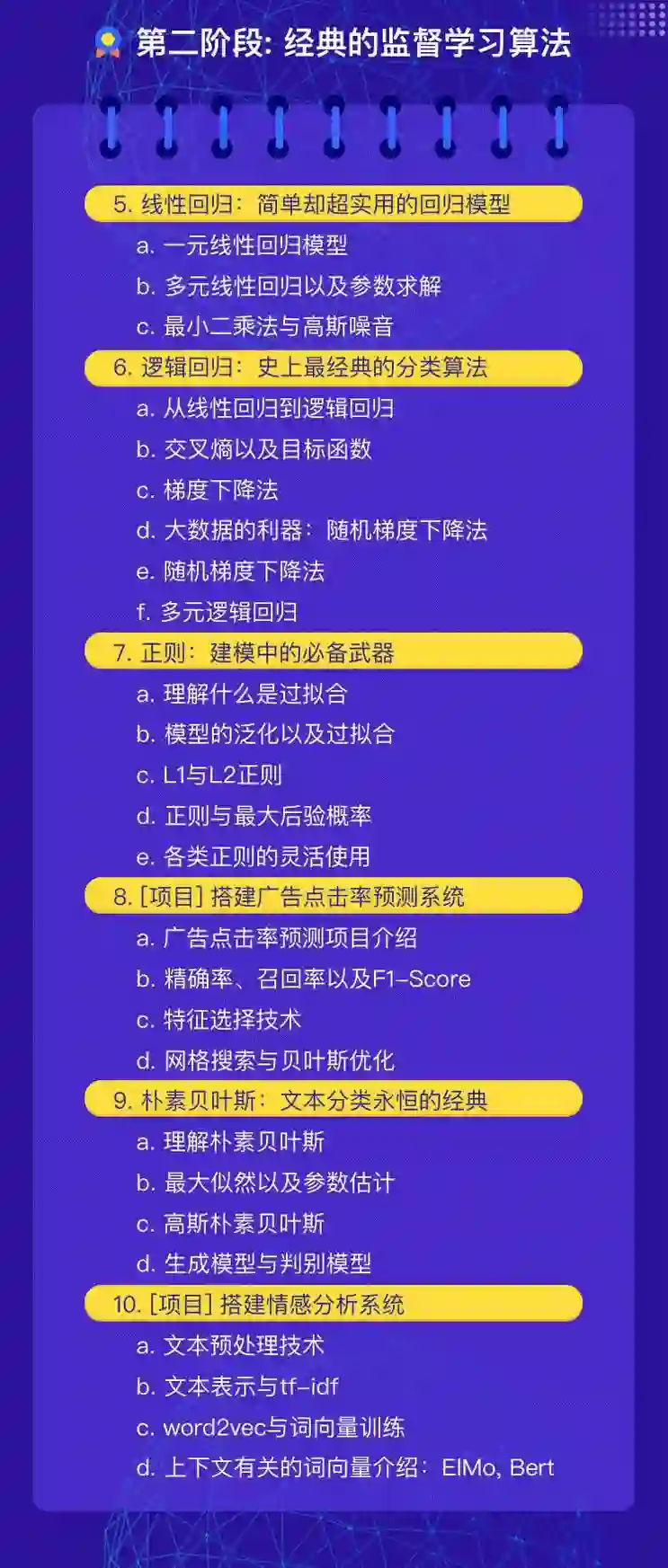 课程内容由贪心学院院长亲自操刀设计,目前市面上最火爆的NLP高阶训练营也是来自于院长。课程内容上涵盖了几乎所有主流的机器学习算法,由浅入深,非常通俗易懂。以下是课程大纲:
