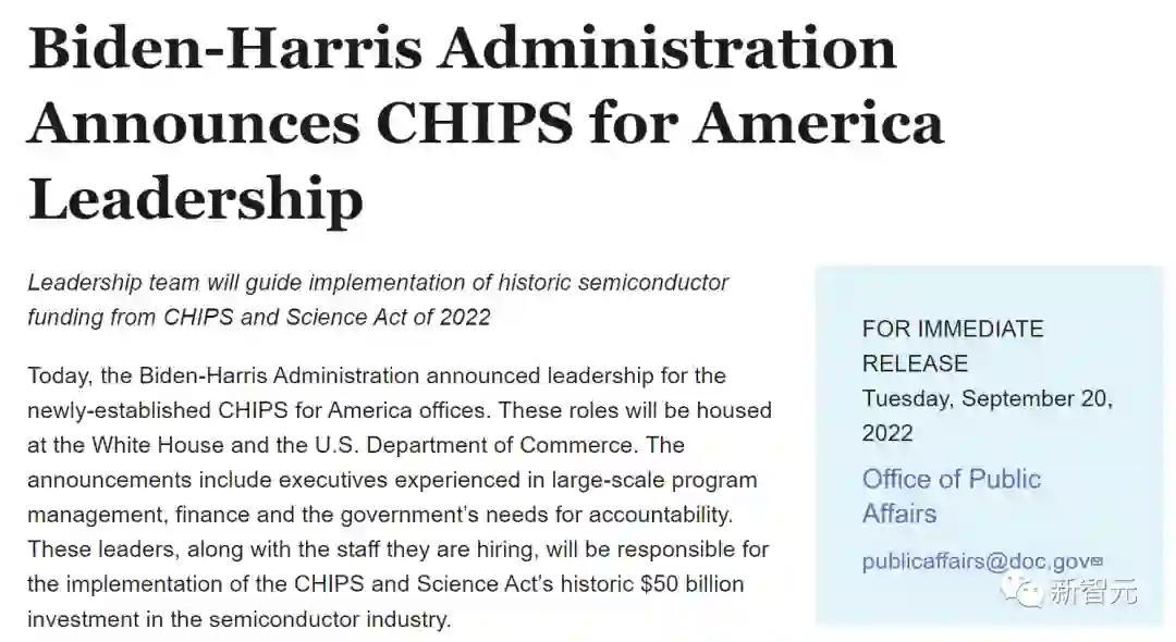 9月20日,白宫正式宣布成立「芯片法案」办公室,负责具体管理和协调该法案的具体实施。