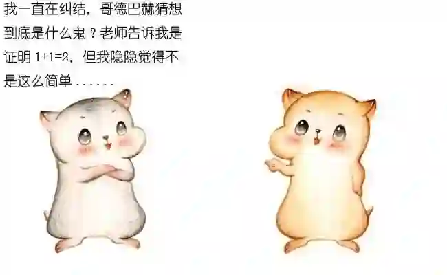 因此,这里的“1+1”指的是两个素数之和,千万不要把它理解成字面上的1+1=2,不然就丢人现眼了!