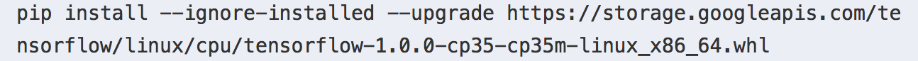 Step2: 安装的tensorflow版本为1.0.0, python=3.5如下命令: