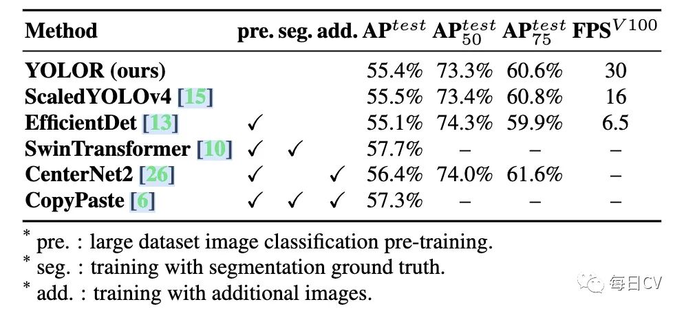 引入隐式知识的YOLOR取得了精度的提升,但论文中提升的精度还是比较有限的,但从其速度翻倍的角度应该也某种程度上体现了所提方法的有效性吧,另外下面这幅对比图中的精度top3来自github中的实现,还并未体现在论文中,期待作者后续的更多工作。