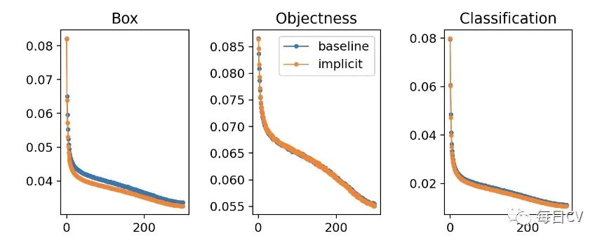 如表7和图11所示,引入隐式知识,仅增加不到万分一的参数量和计算量,模型性能得到有意义的提升,同时收敛更快。
