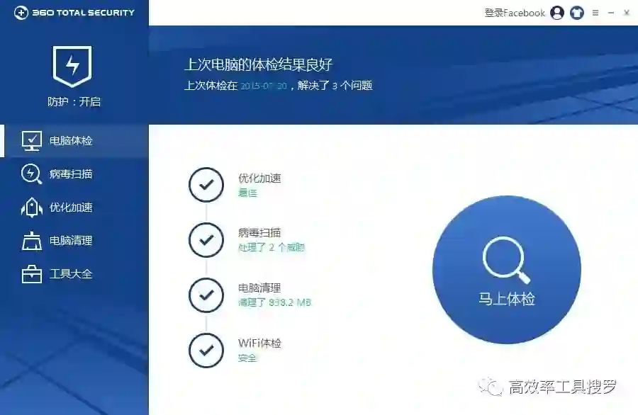 它也有主动防护,优化加速电脑,电脑清理等功能。
